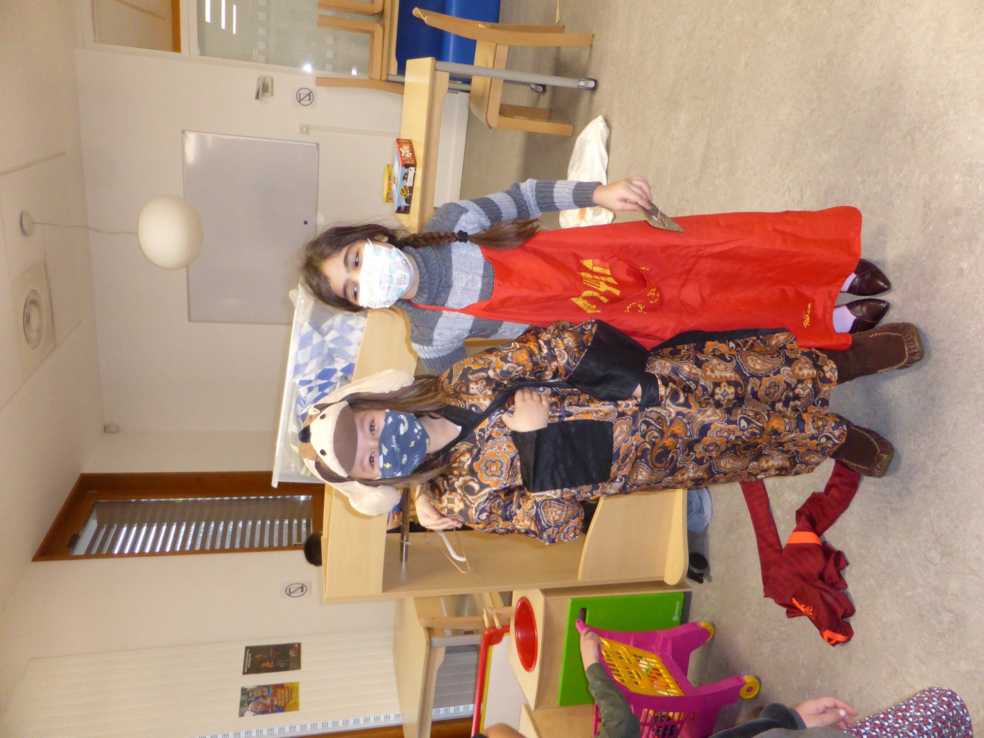 En attendant que Claire explique les différents ateliers aux adultes, nous avons pu jouer et même nous déguiser !