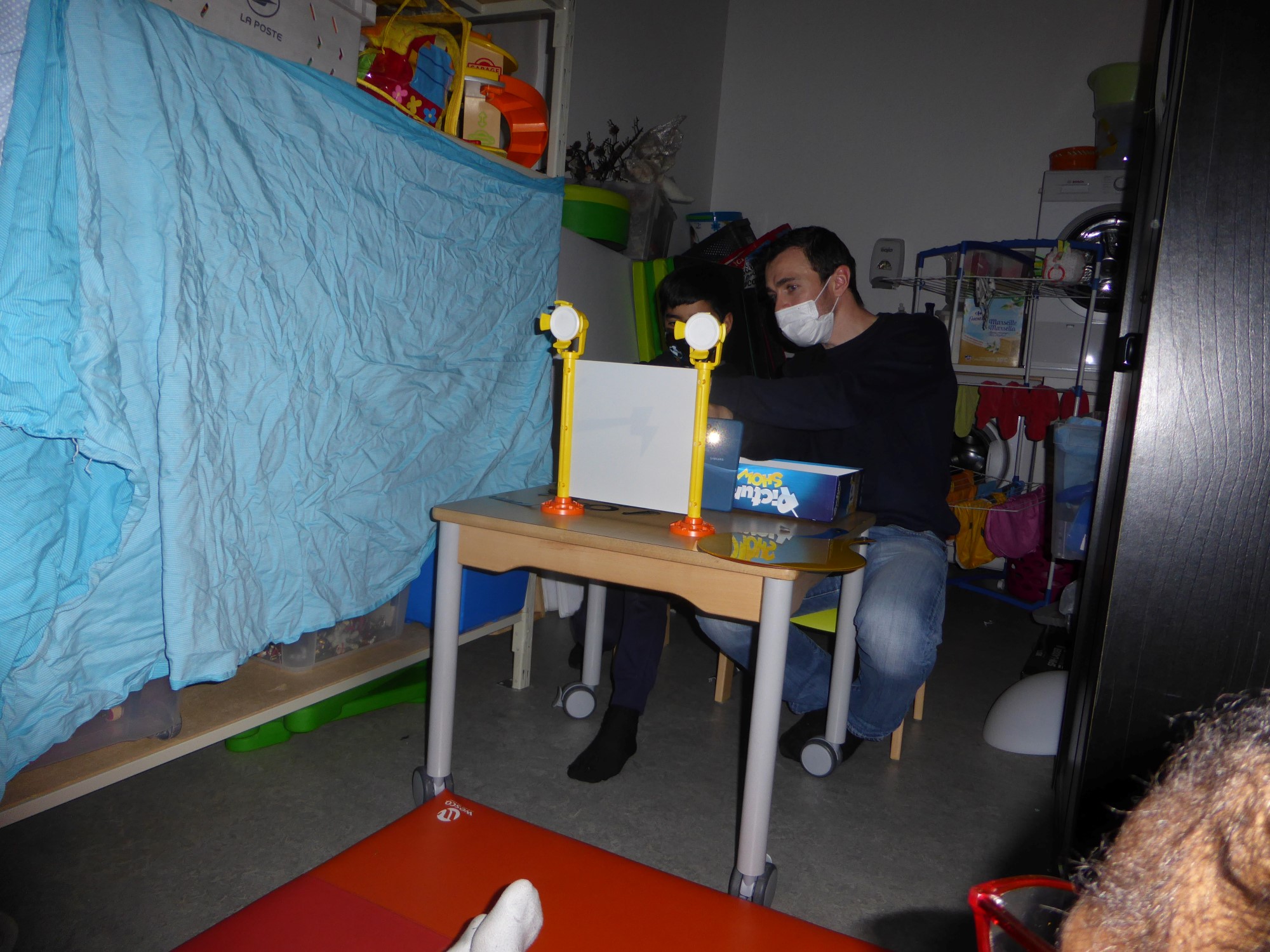 Pour la vue : un jeu de logique et d'observation et un atelier d'ombres chinoises
