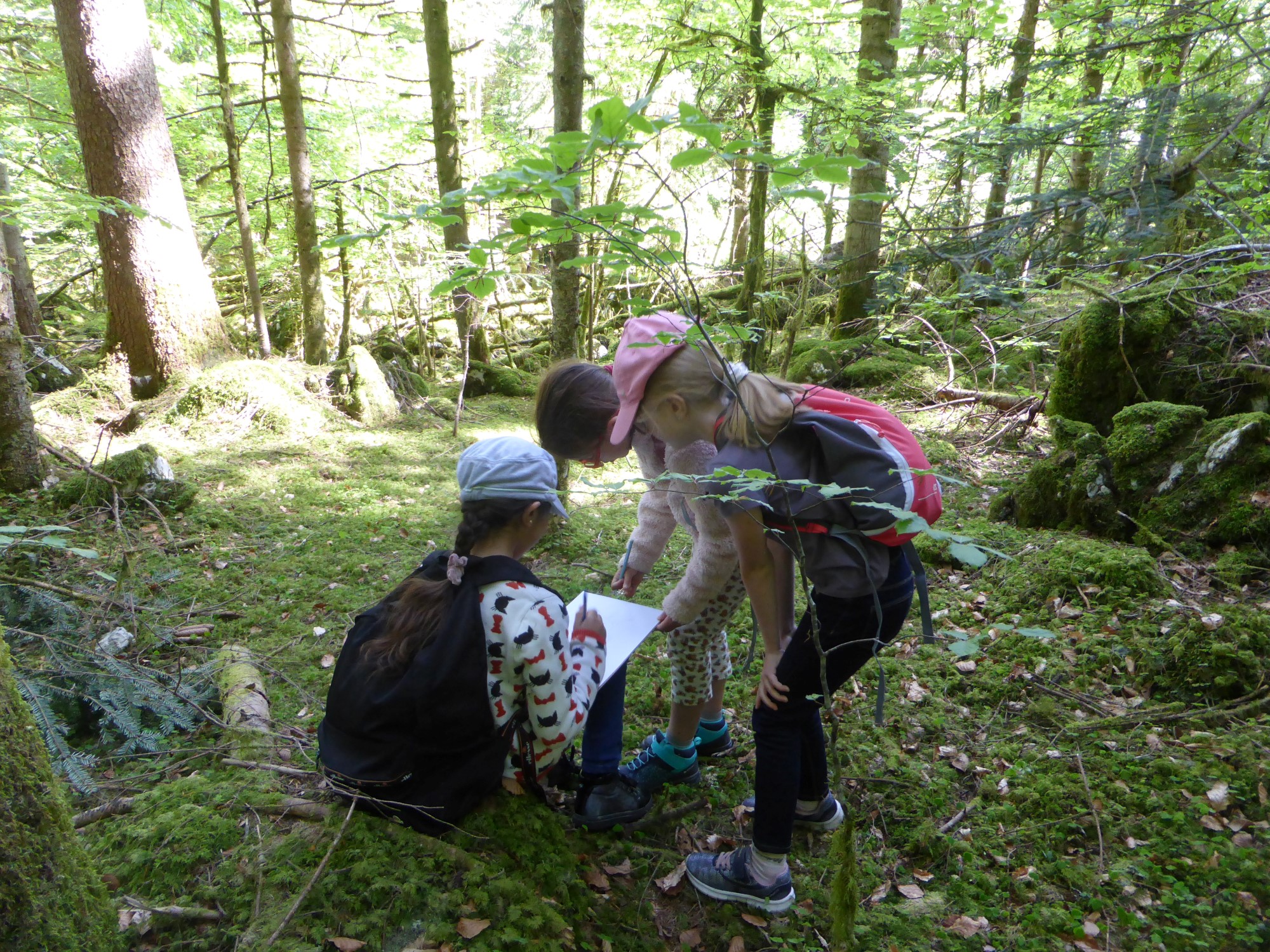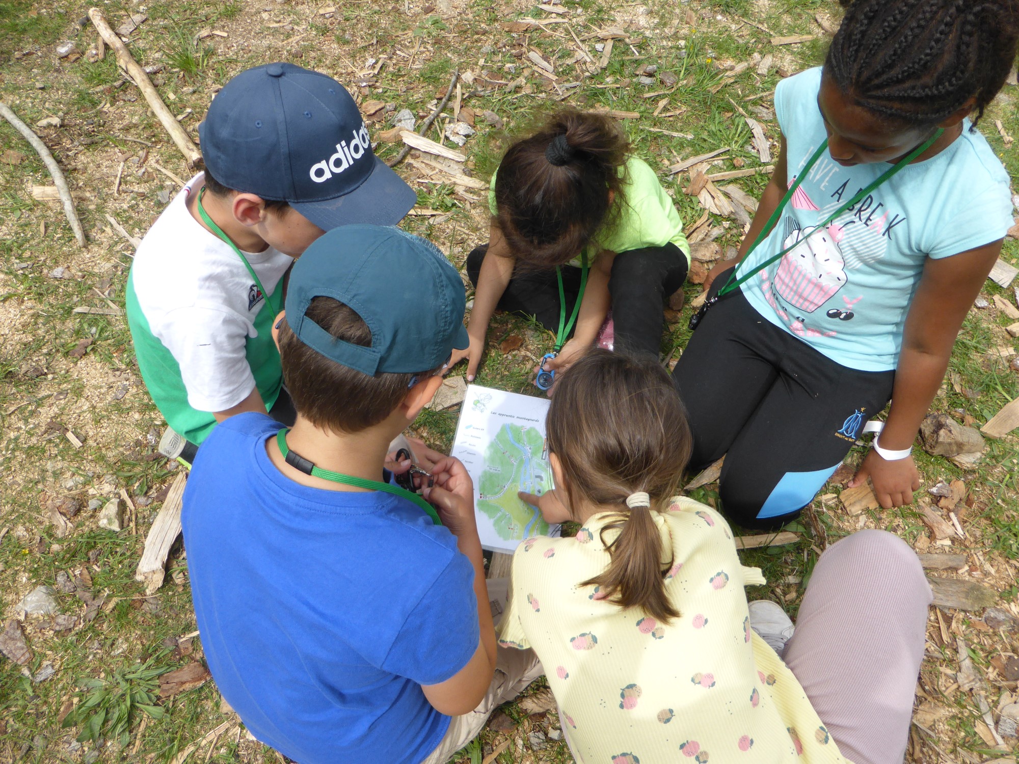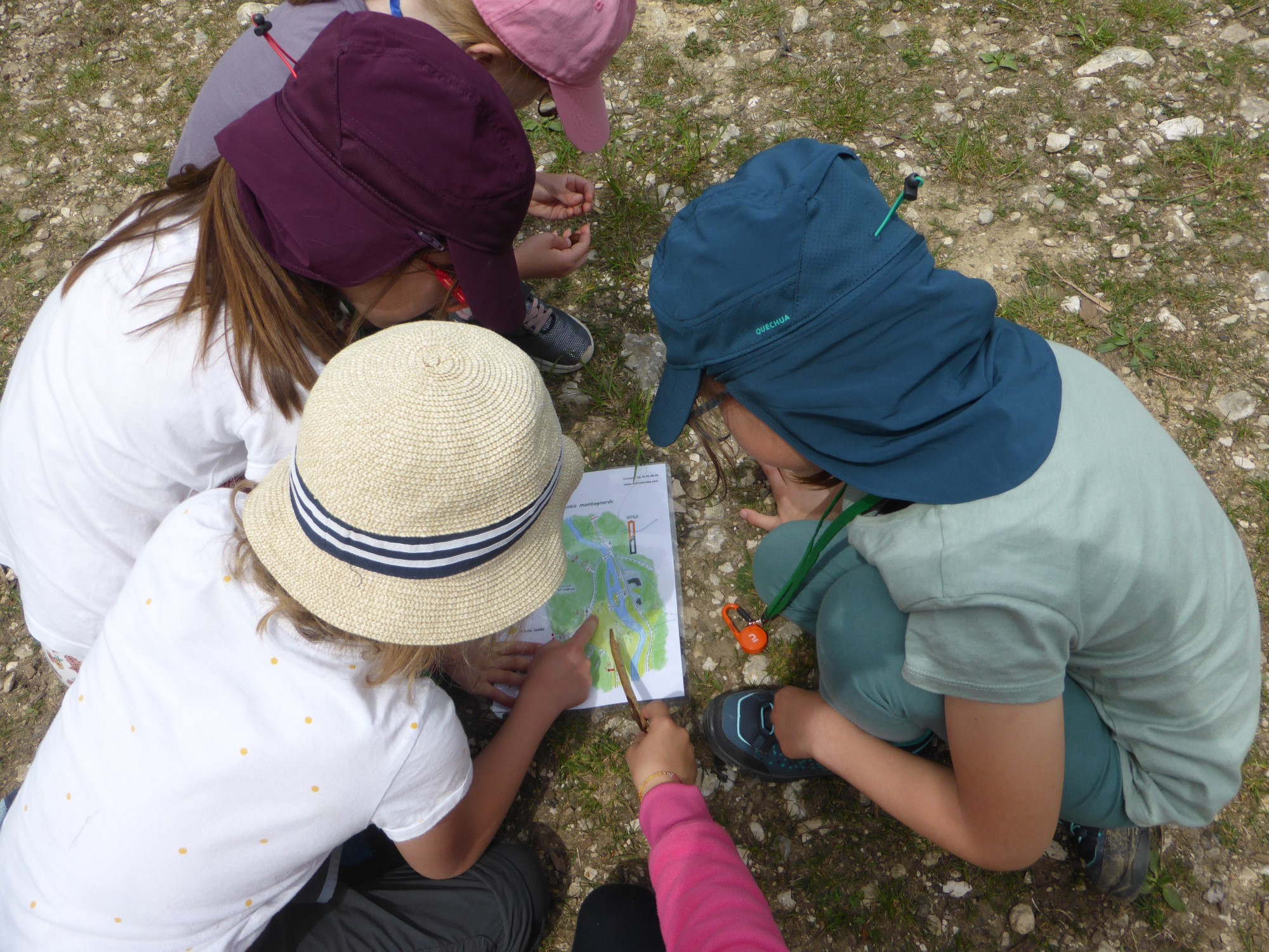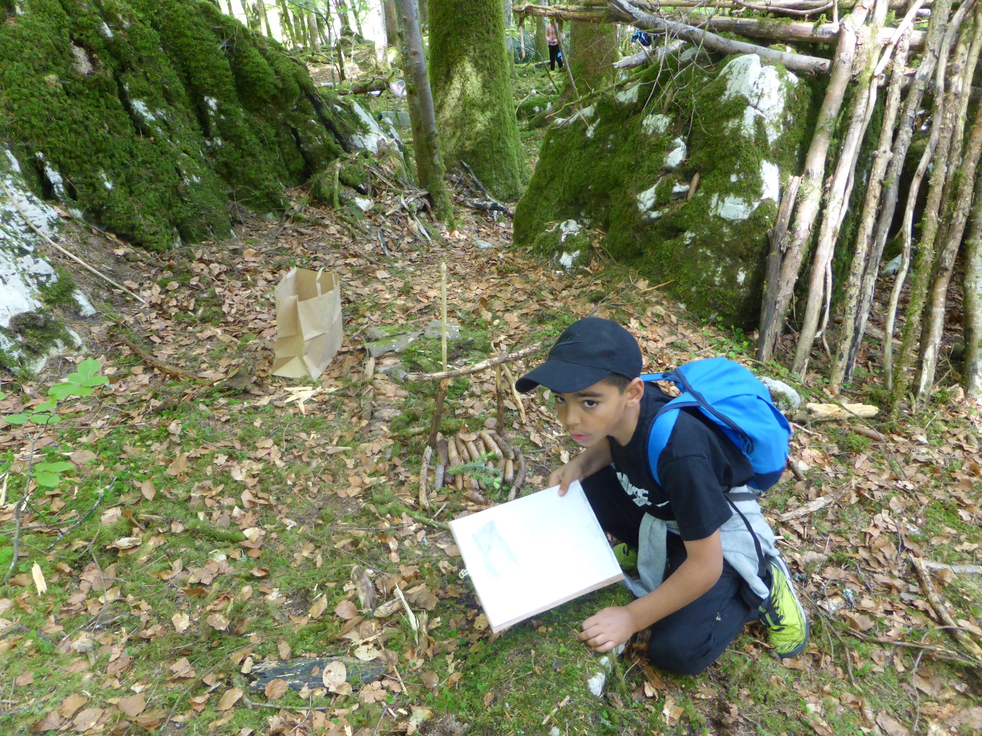 L'après-midi, François nous a montrés un tableau expliquant les différents étages de la forêt. Il nous a réexpliqué comment se servir d'une boussole. Il nous a distribués des cartes de la prairie et de ses alentours et nous avons cherché à nous repérer. Lorsque tout le monde y est parvenu, chaque groupe est parti chercher une balise dans laquelle il fallait prendre une pièce de puzzle pour reconstituer les étages de la forêt. Chaque groupe a réussi à trouver 3 à 4 balises. Certaines étaient vraiment bien cachées.