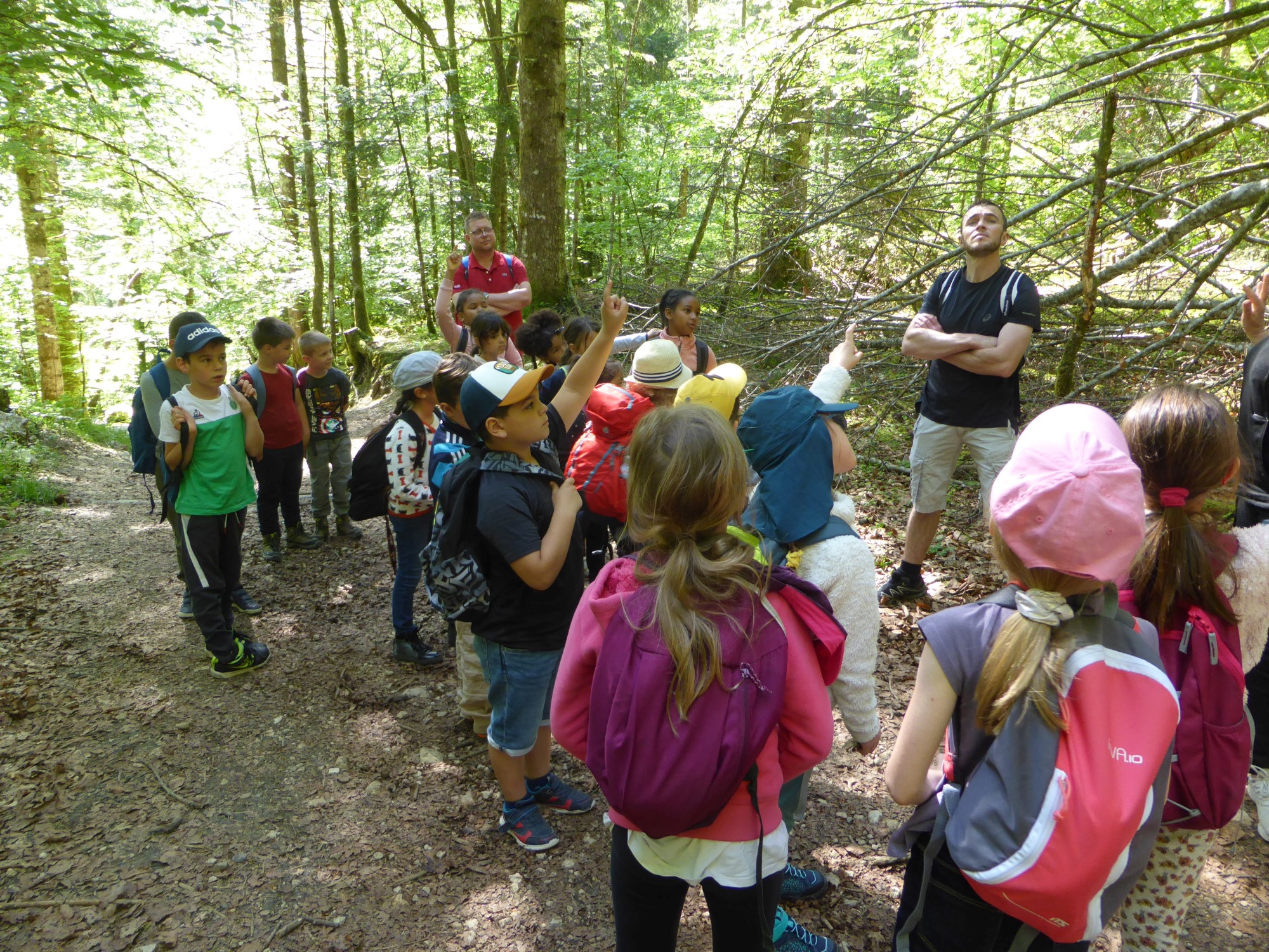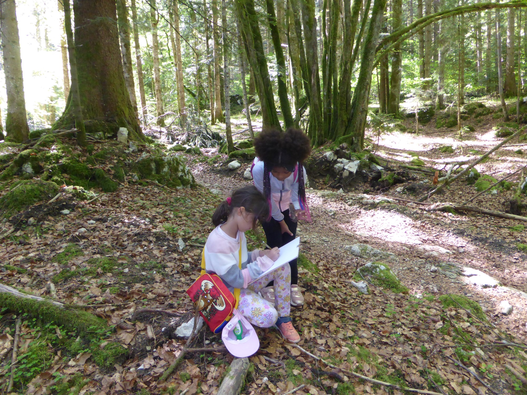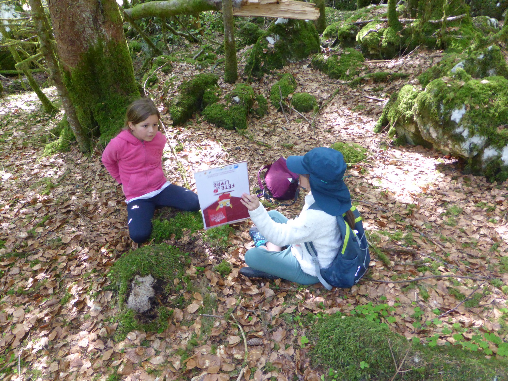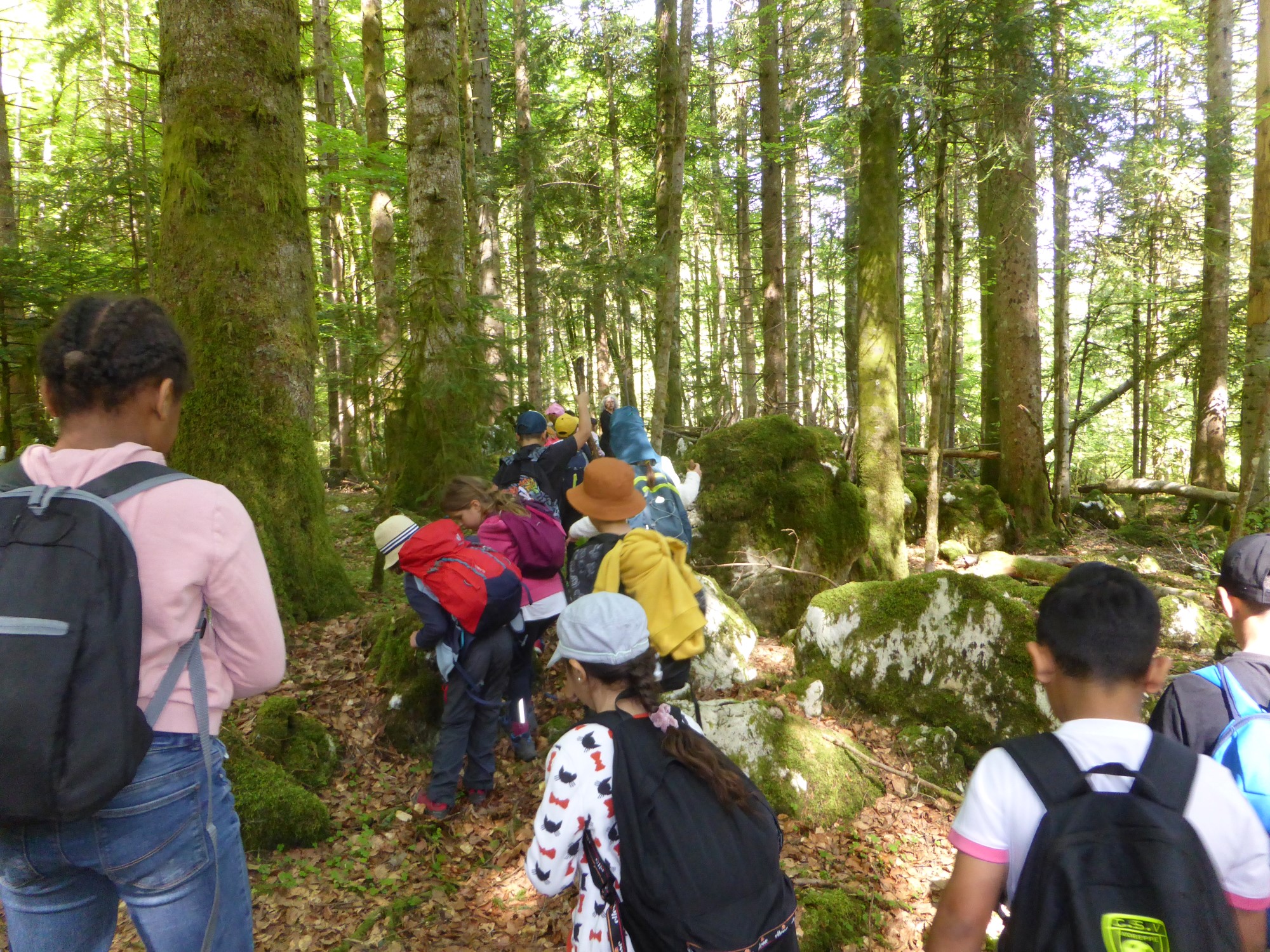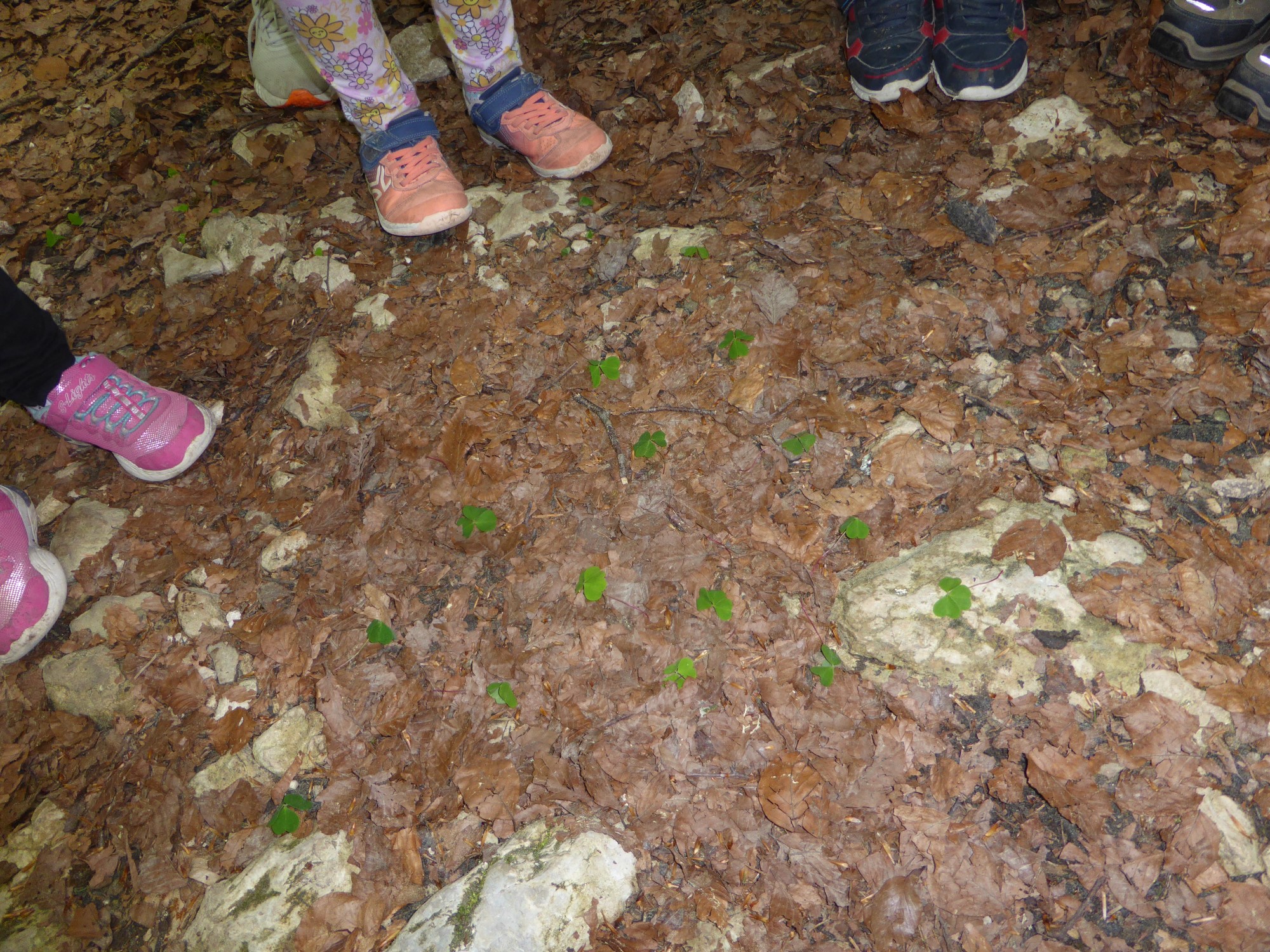 L'après-midi, François nous a montrés un tableau expliquant les différents étages de la forêt. Il nous a réexpliqué comment se servir d'une boussole. Il nous a distribués des cartes de la prairie et de ses alentours et nous avons cherché à nous repérer. Lorsque tout le monde y est parvenu, chaque groupe est parti chercher une balise dans laquelle il fallait prendre une pièce de puzzle pour reconstituer les étages de la forêt. Chaque groupe a réussi à trouver 3 à 4 balises. Certaines étaient vraiment bien cachées.