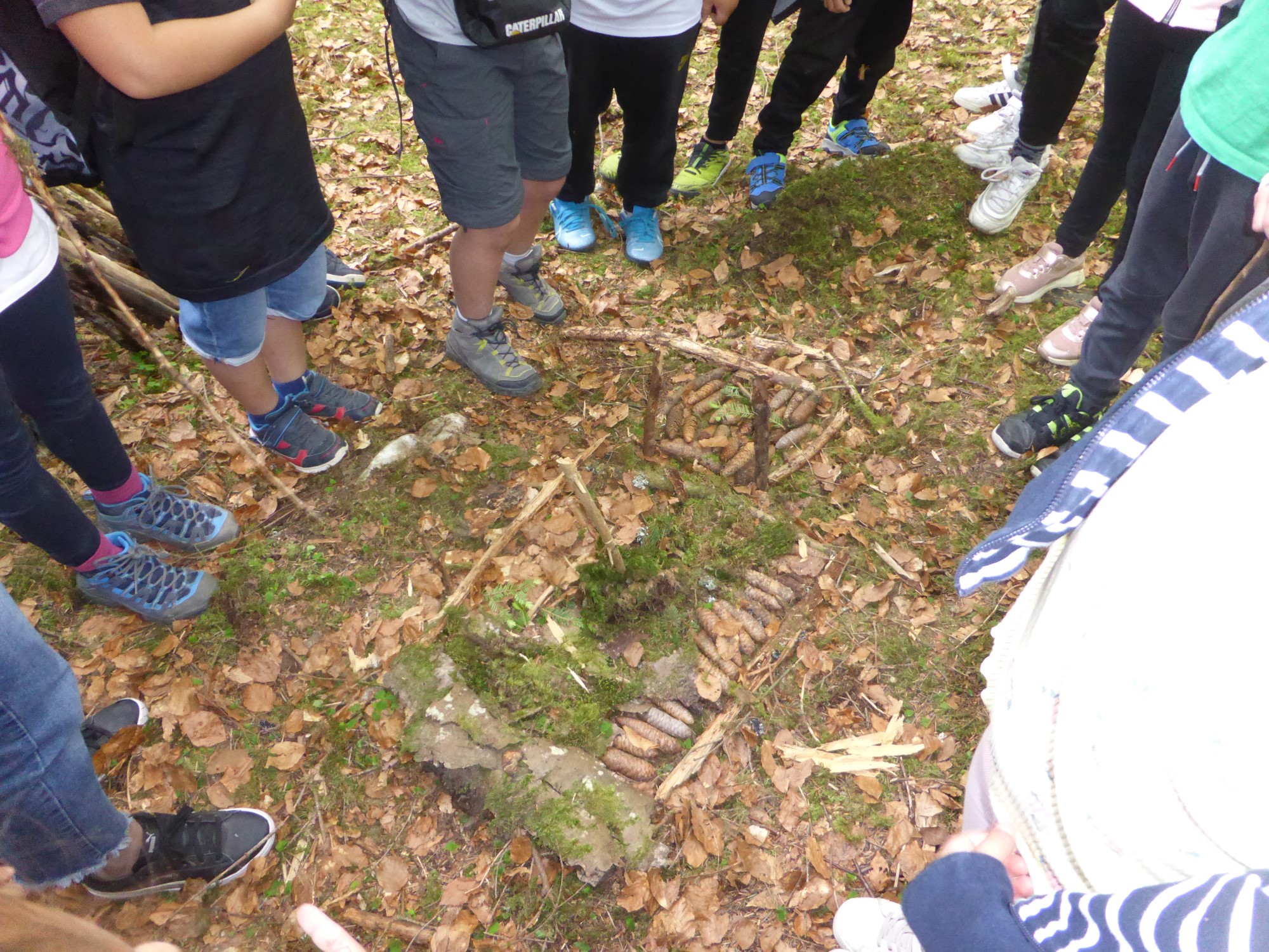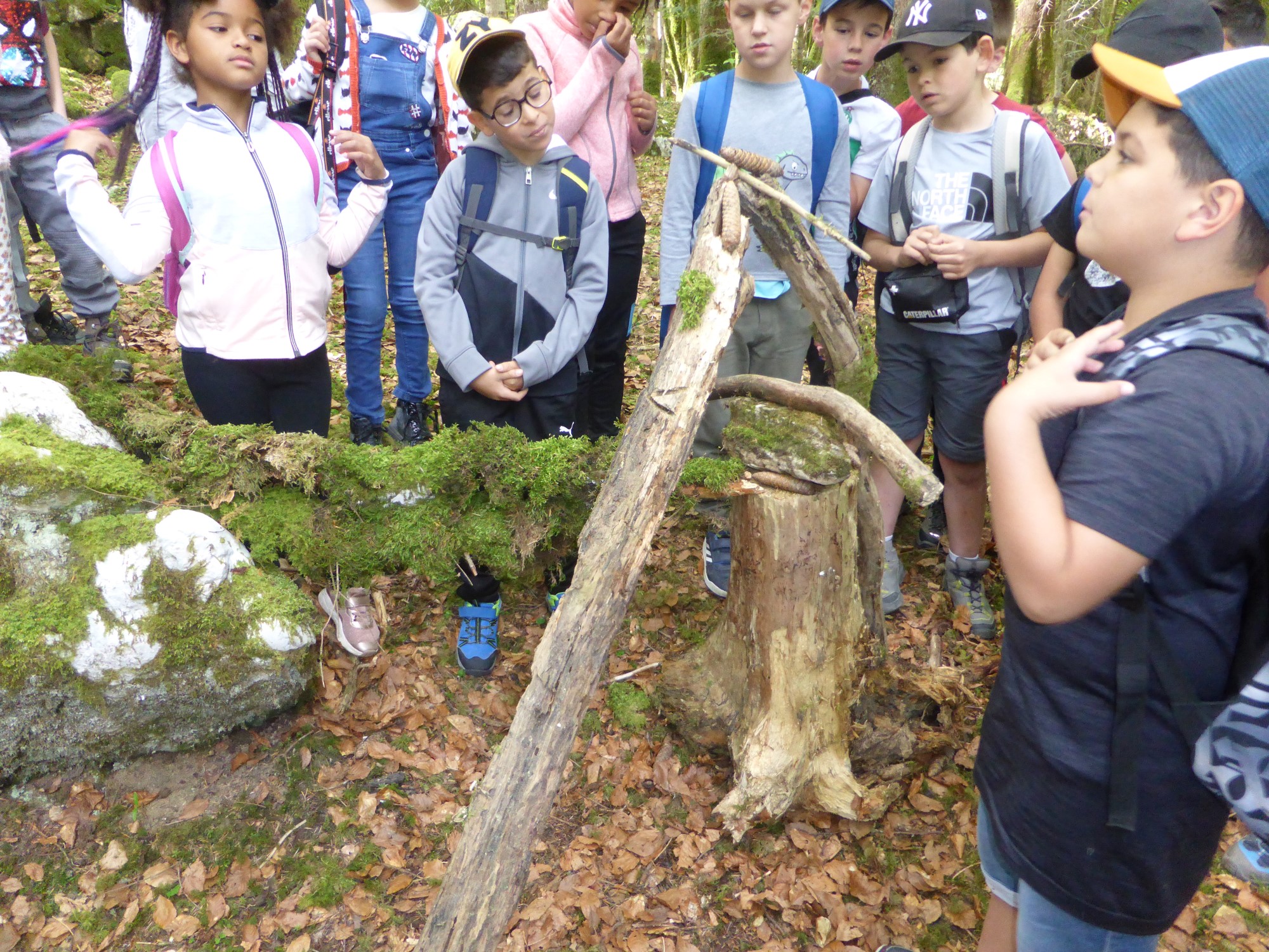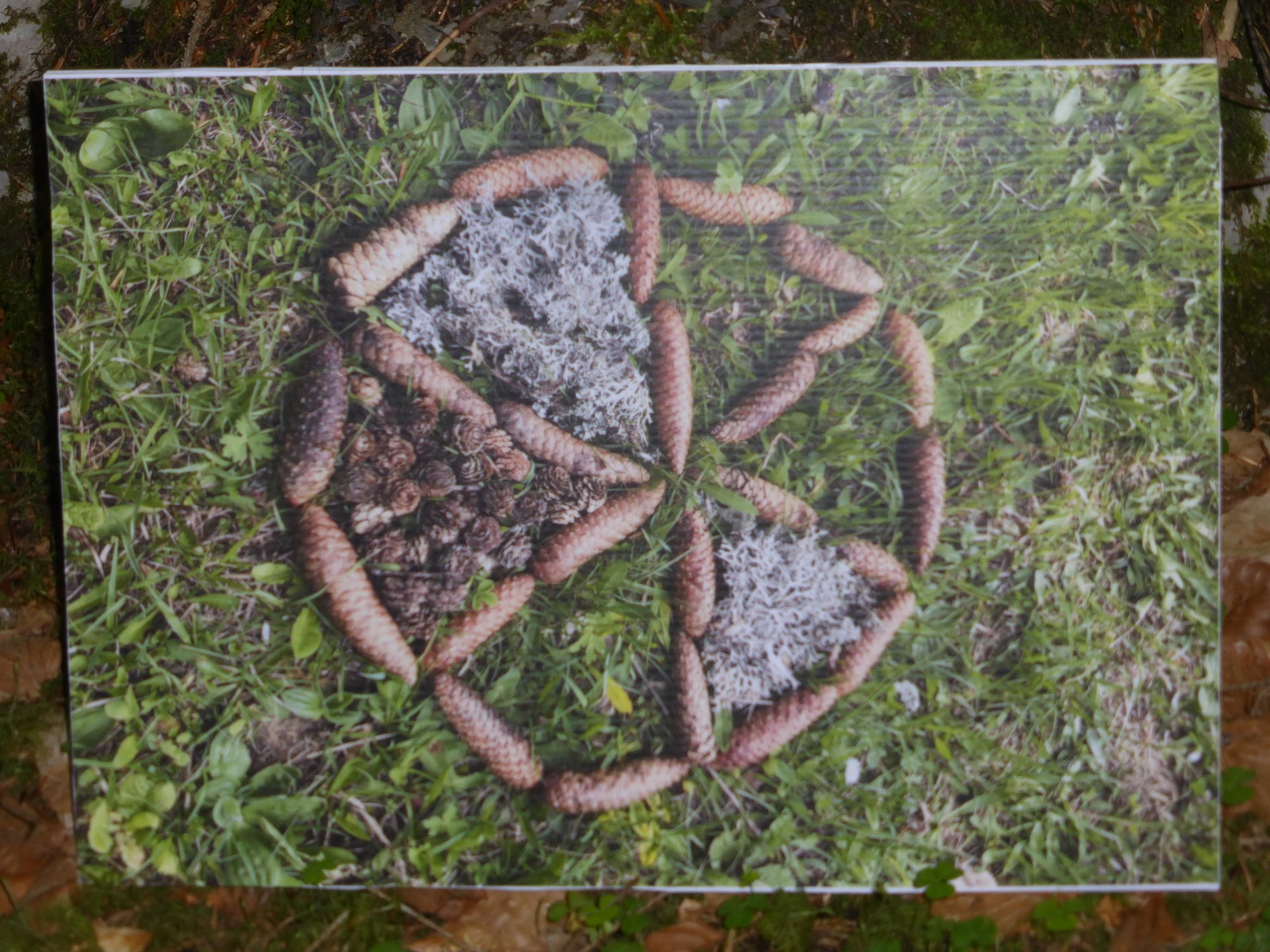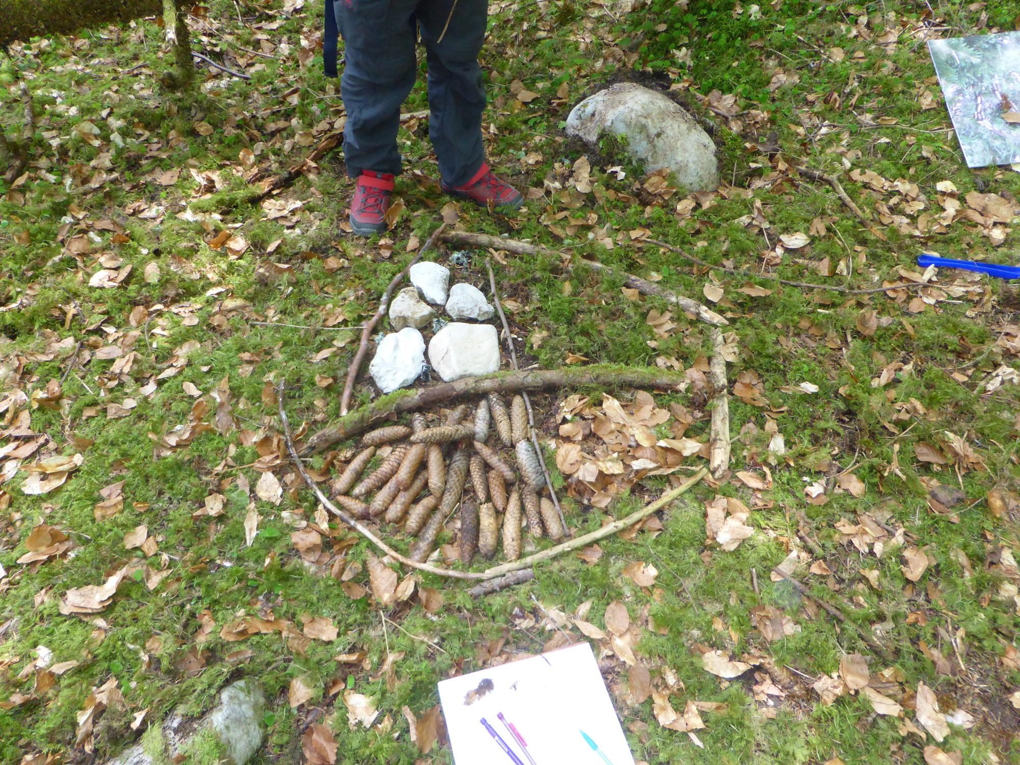 Nous avons également fait la connaissance de Sandrine qui s'est occupée de nous en arrivant. Elle nous a emmenés dans la forêt et nous avons observé des oeuvres de land art. Le land art, c'est faire des oeuvres d'art à partir d'éléments naturels. Ces oeuvres sont éphémères. Elles sont détruites par la pluie, le vent ou les animaux.