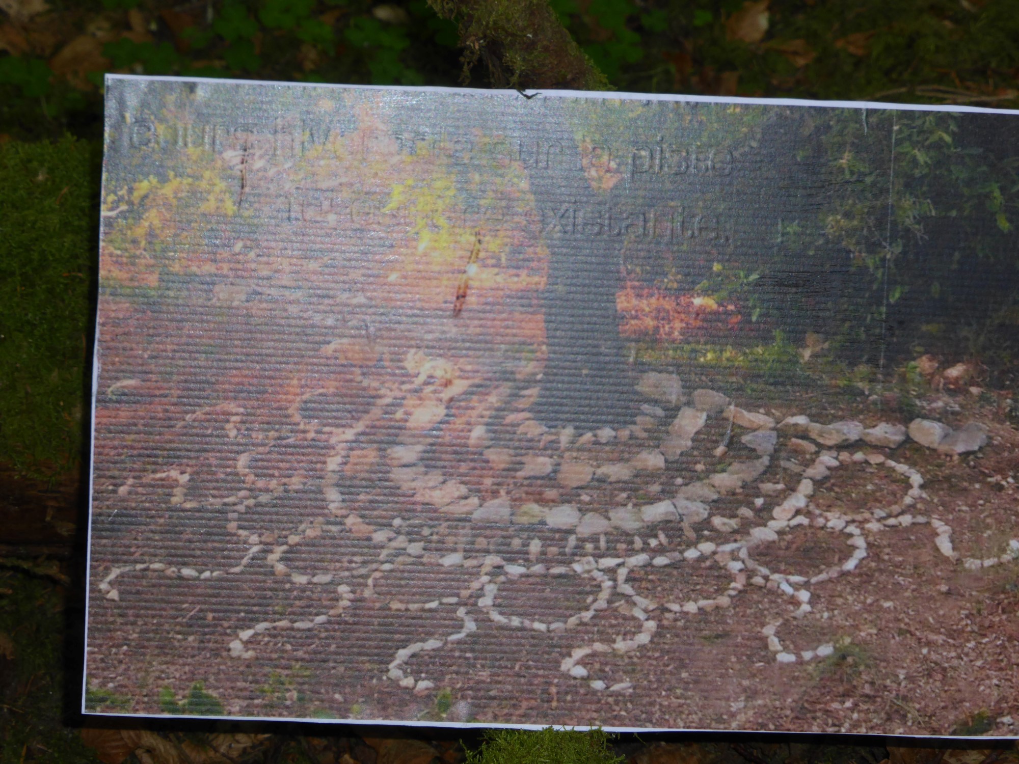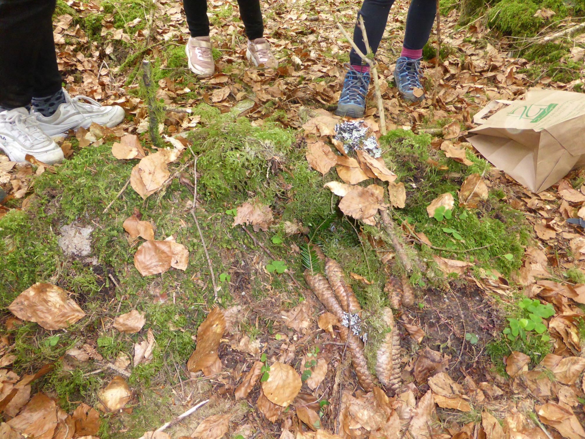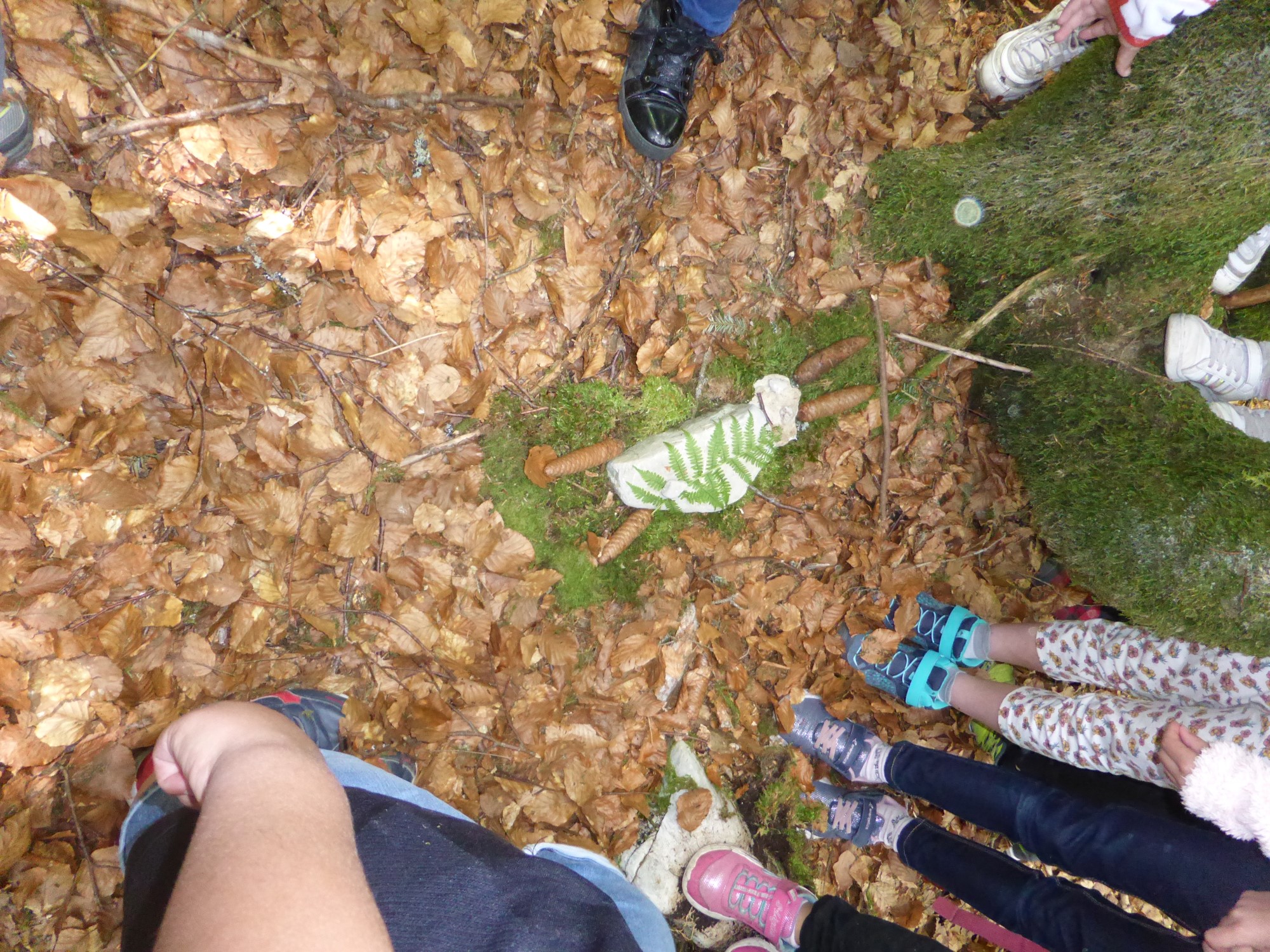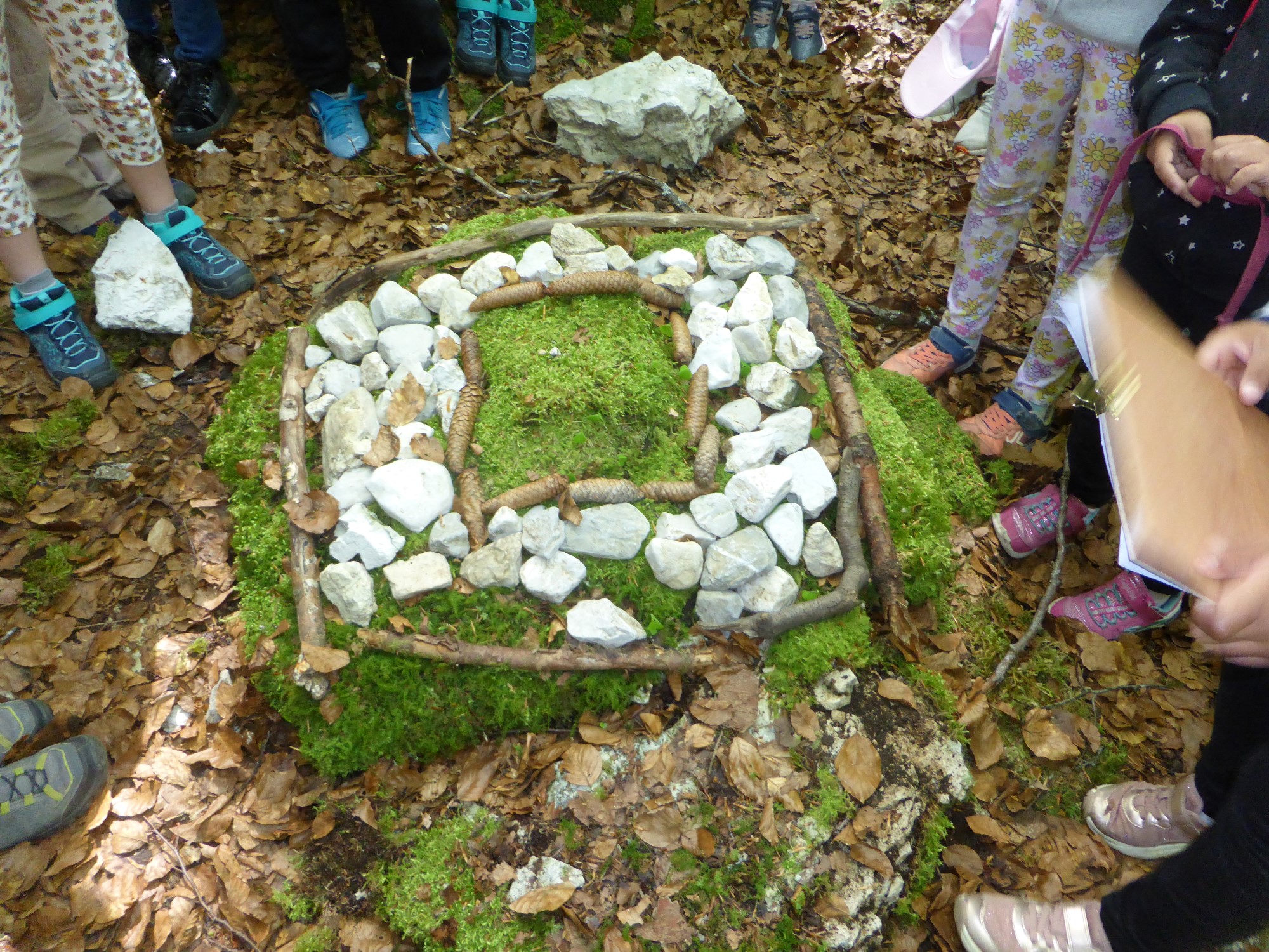 Nous avons également fait la connaissance de Sandrine qui s'est occupée de nous en arrivant. Elle nous a emmenés dans la forêt et nous avons observé des oeuvres de land art. Le land art, c'est faire des oeuvres d'art à partir d'éléments naturels. Ces oeuvres sont éphémères. Elles sont détruites par la pluie, le vent ou les animaux.