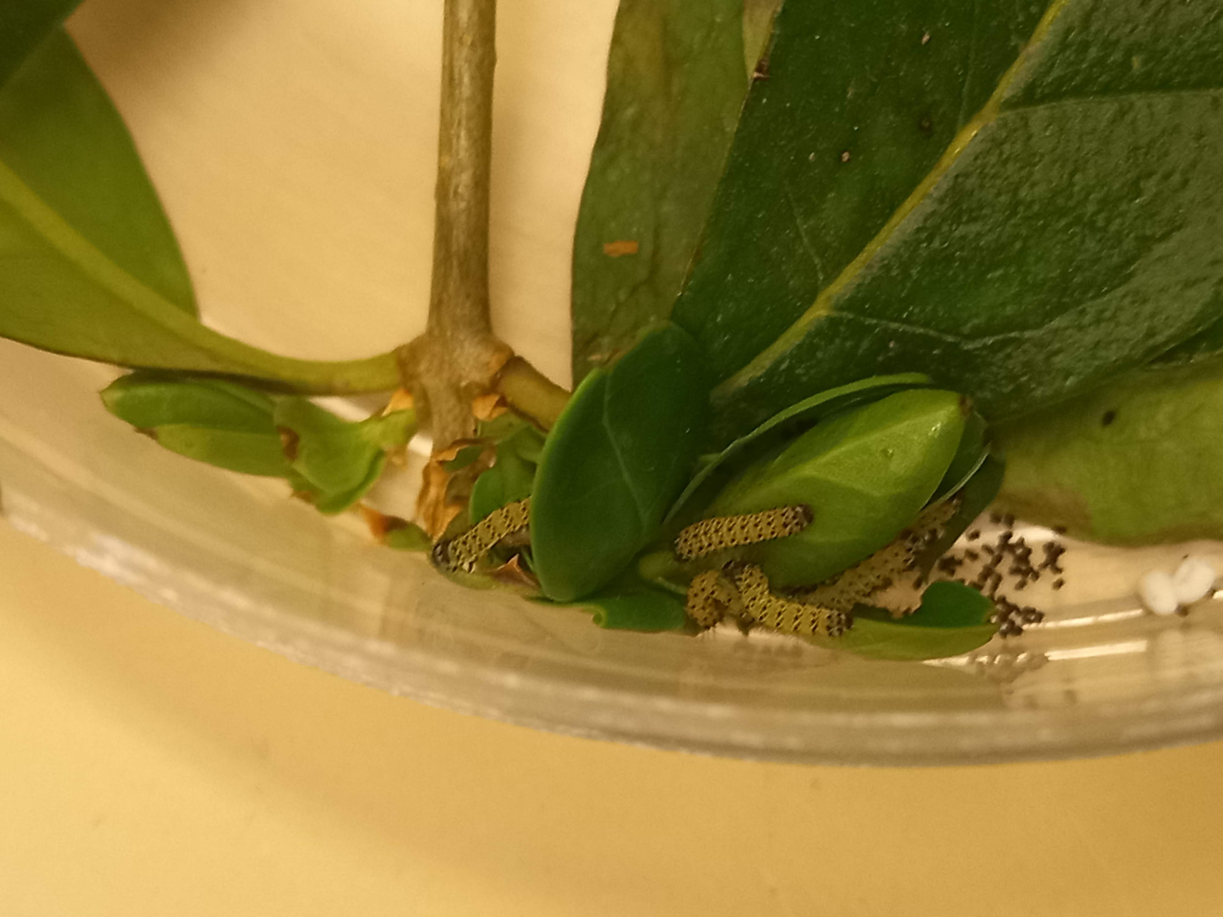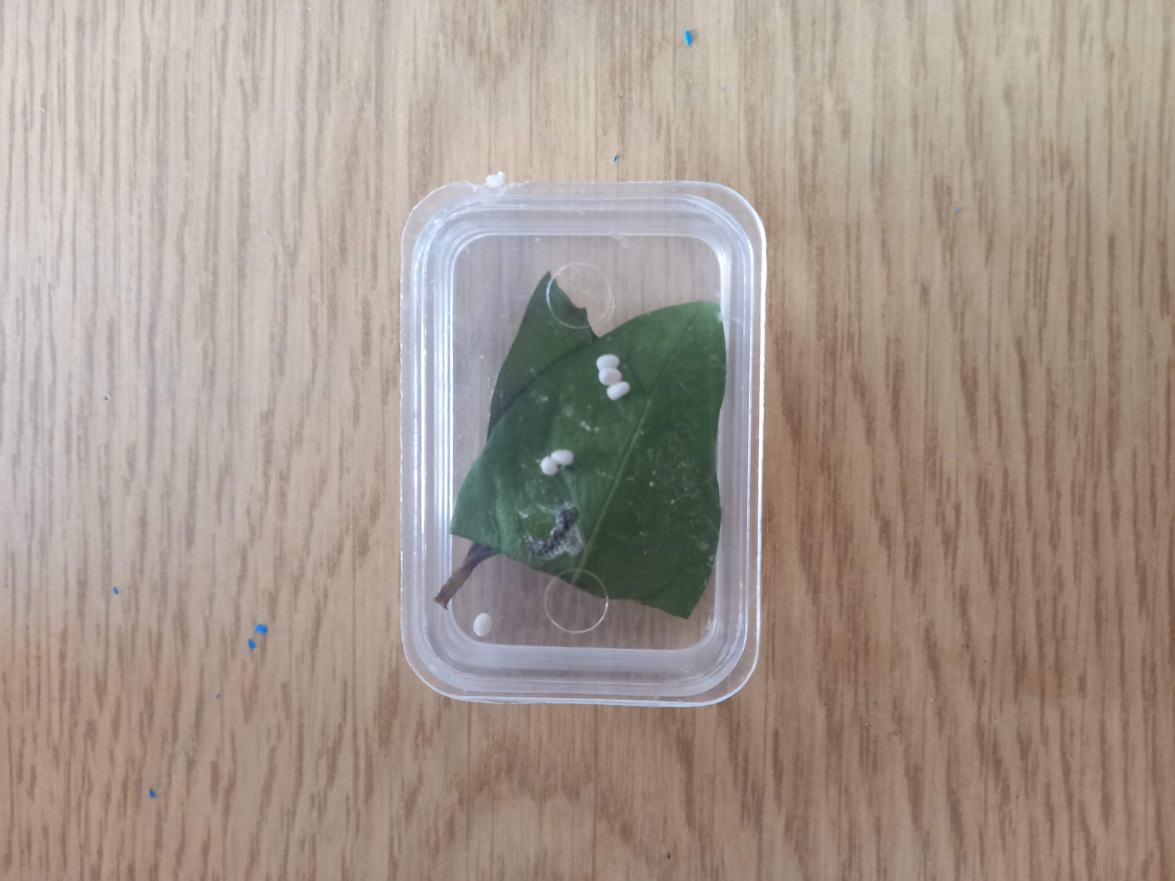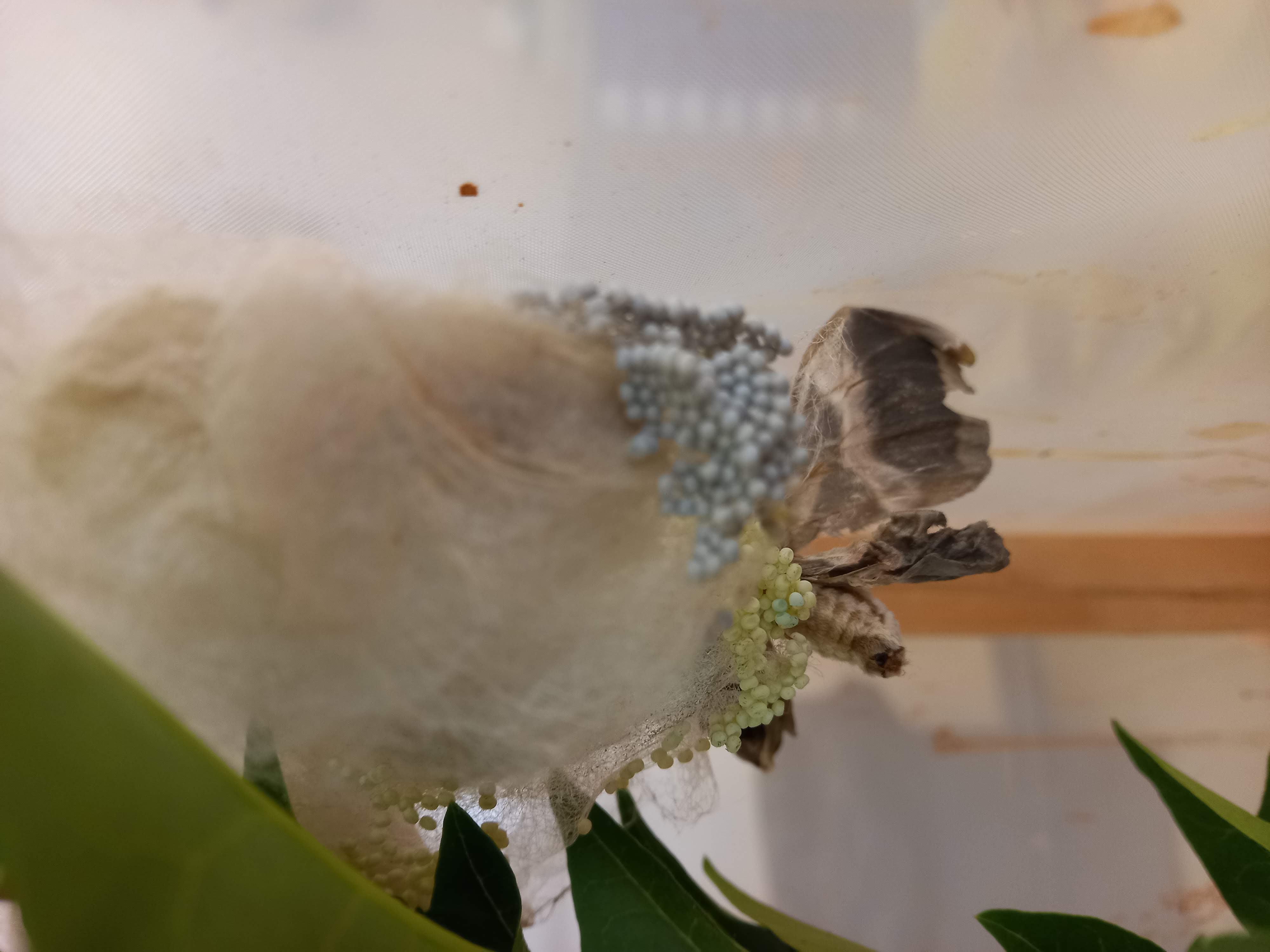 Nous avons eu la surprise de voir que les papillons femelles ont pondu de nouveaux oeufs.