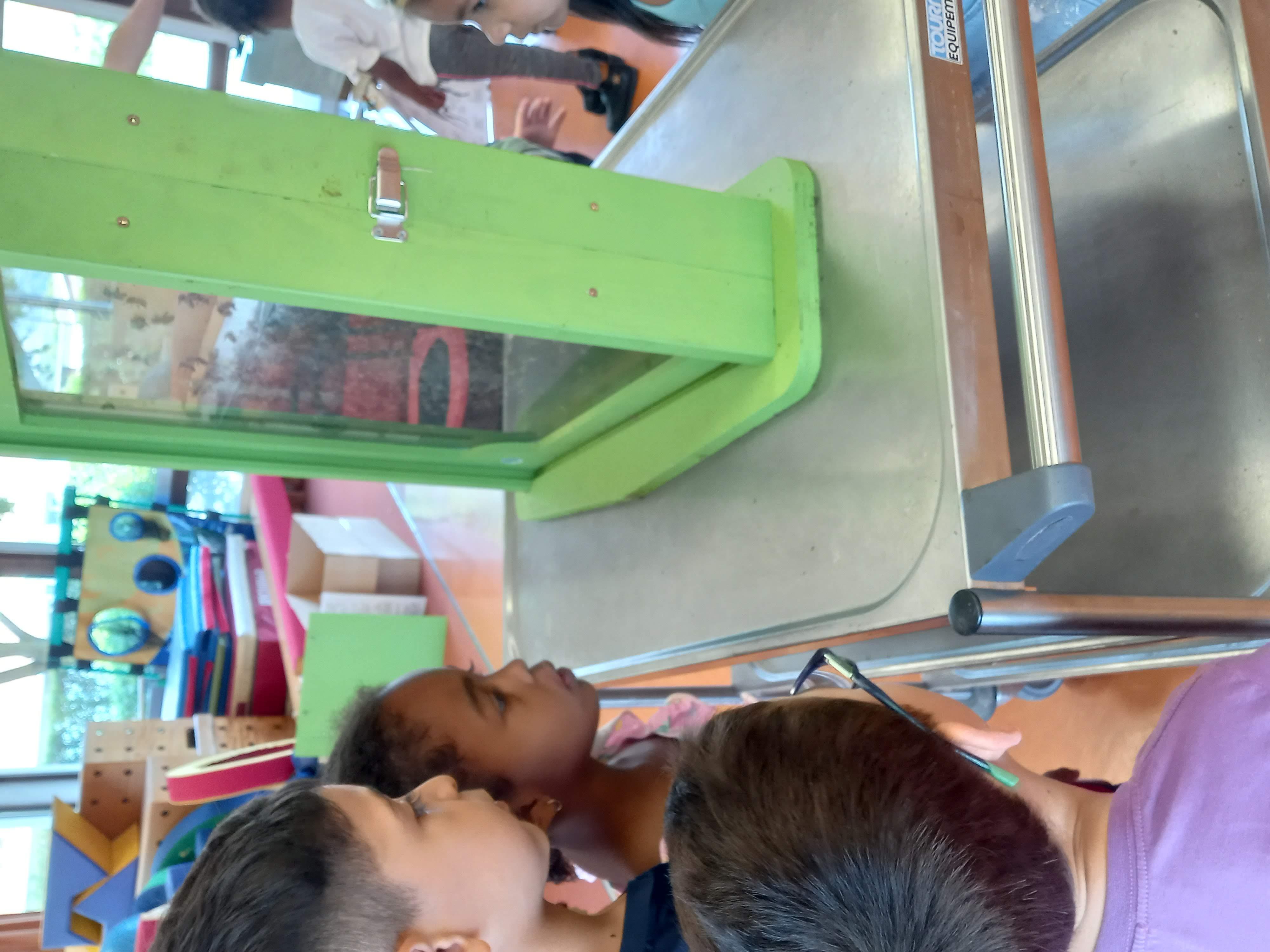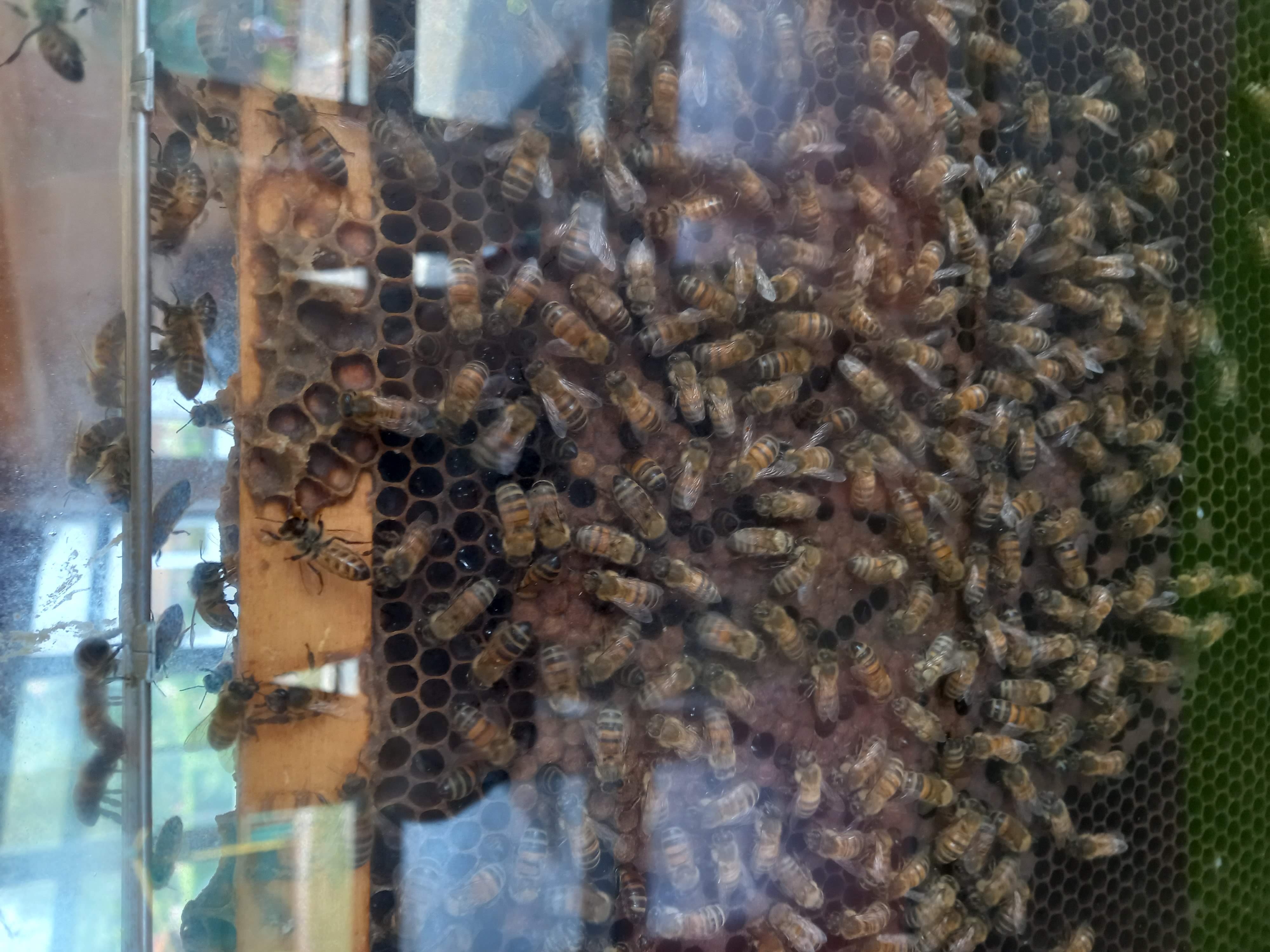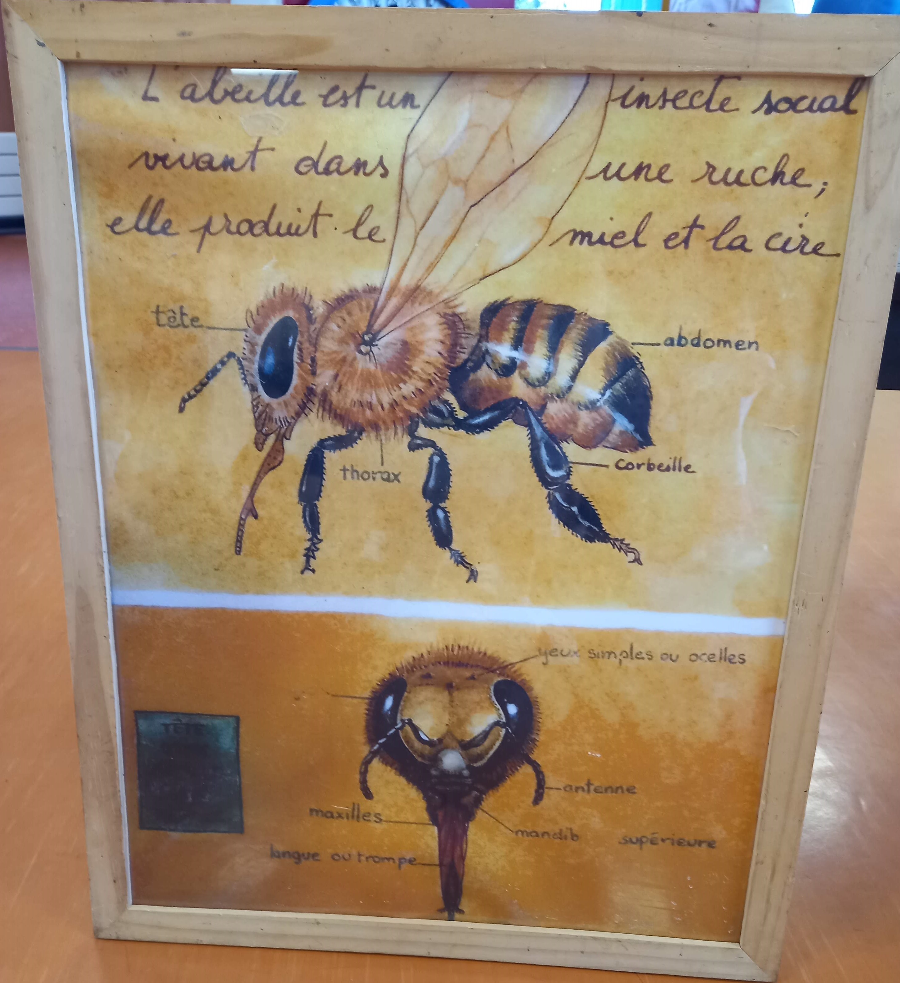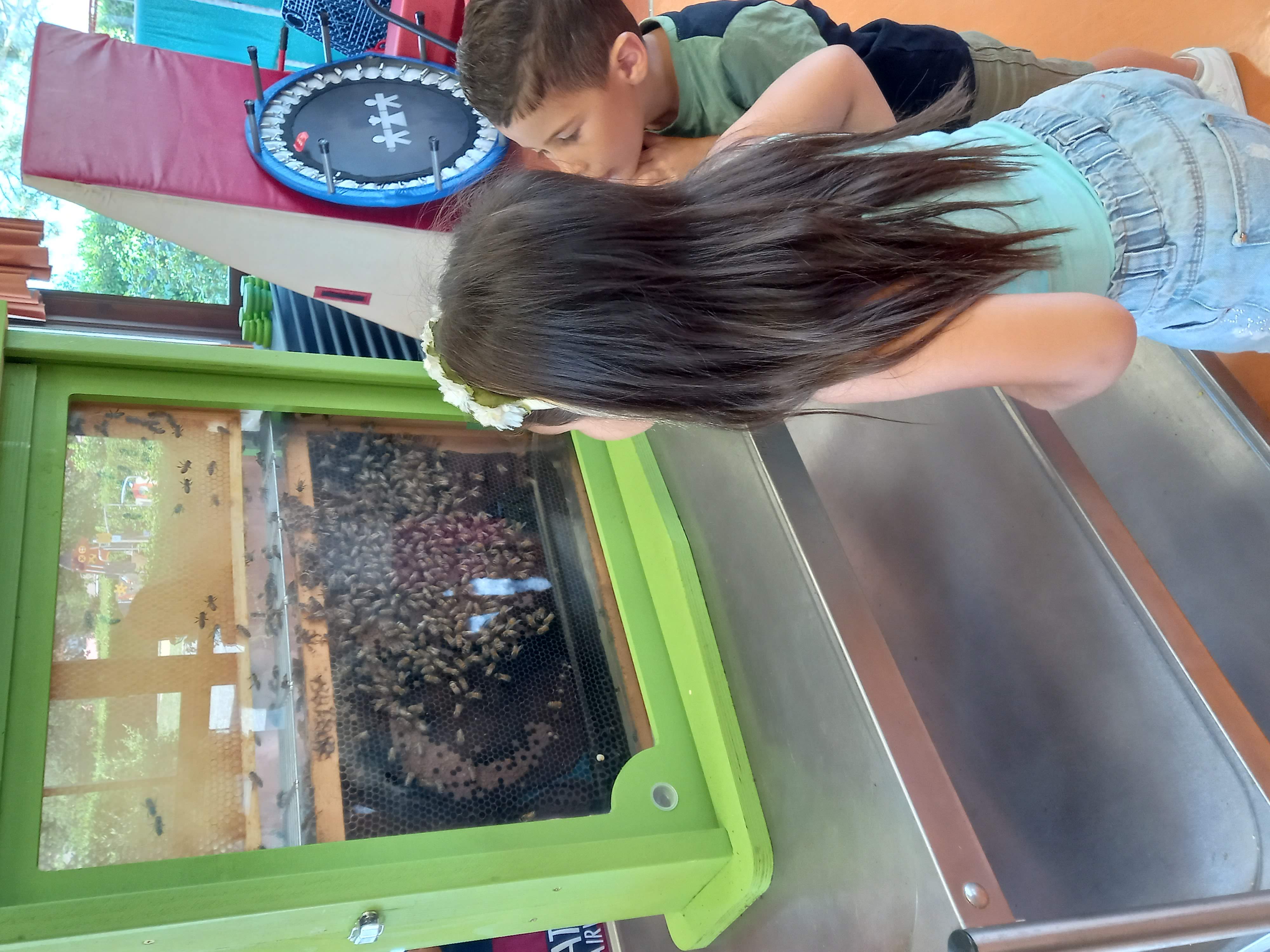 Nous avons observé la ruche. La reine est l'abeille la plus grosse. C'est elle qui pond des oeufs.