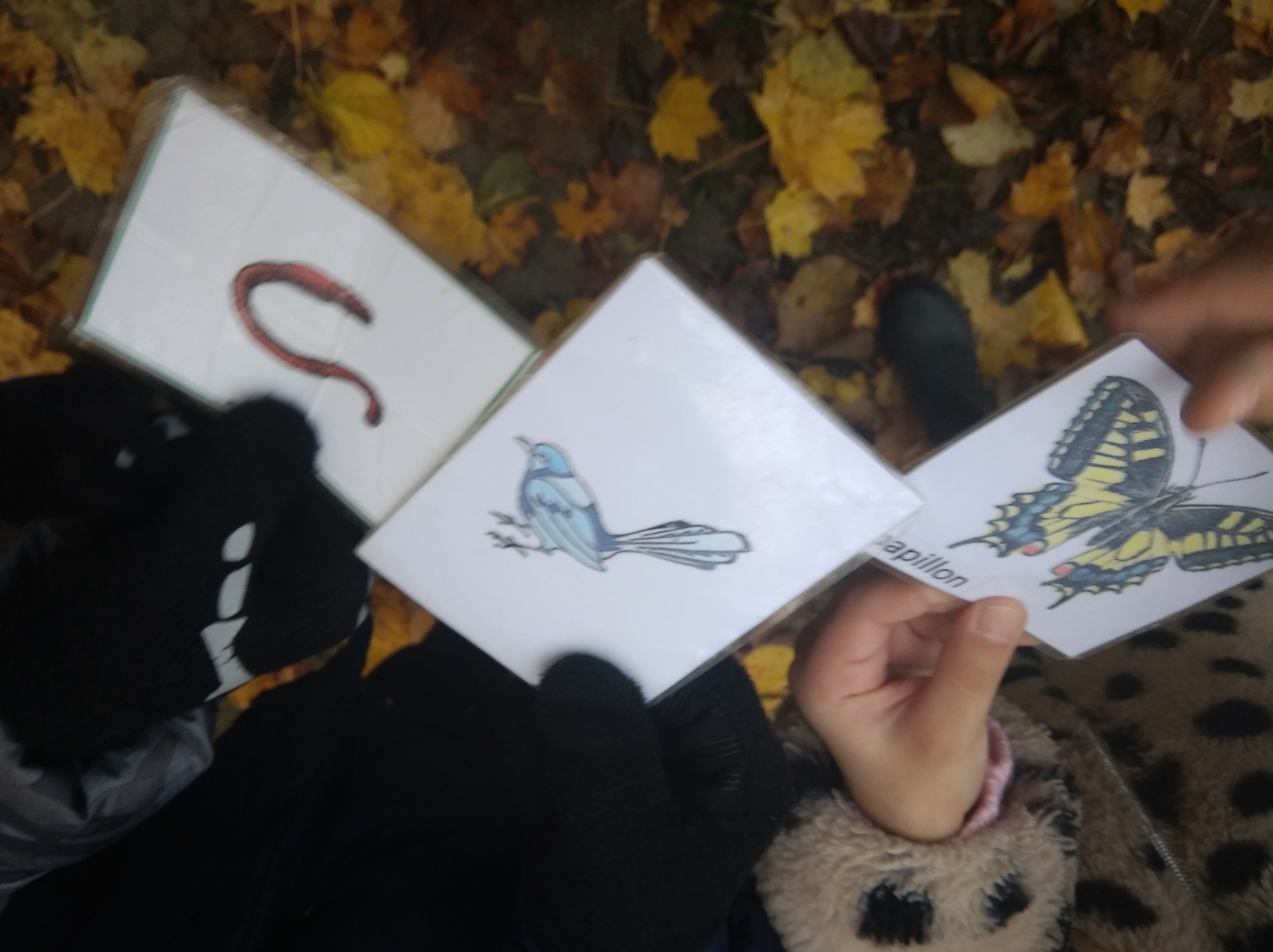 Nous avons aussi cherché les animaux qui sont encore là en automne. Il y a des oiseaux comme le moineau, le merle. Il y a les petites bêtes: insectes, ver de terre...