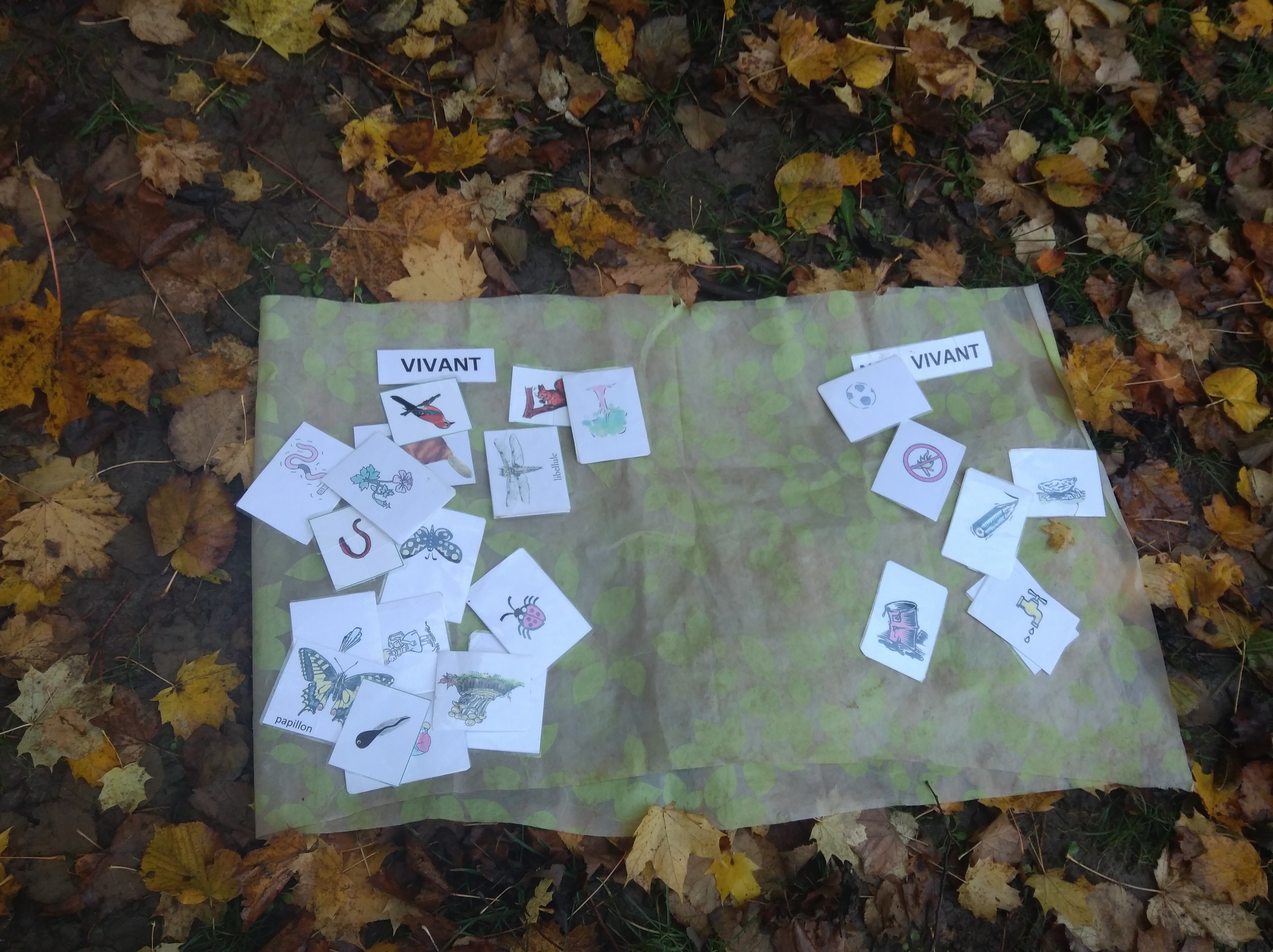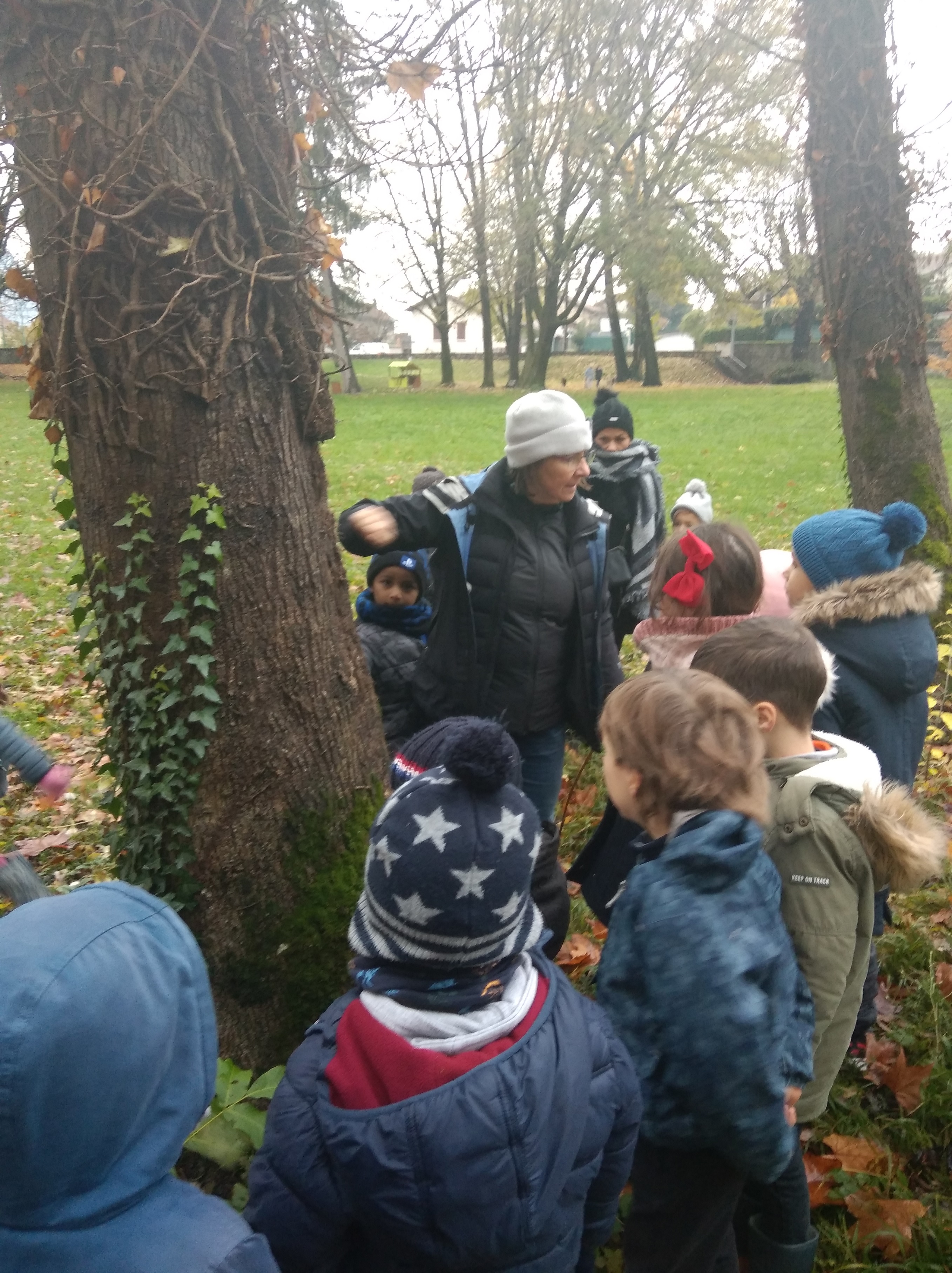Nous avons passé la matinée au parc Lefrançois à Voreppe. Nous avons ramassé, les feuilles et les fruits d'automne qui étaient au sol. Nous les avons identifiés, on les a comparés. Nous avons cherché à quel arbres/arbustes appartenaient ce que nous avons ramassé. Nous avons ramené notre collecte à l'école pour travailler dessus et faire des productions d'art plastique.