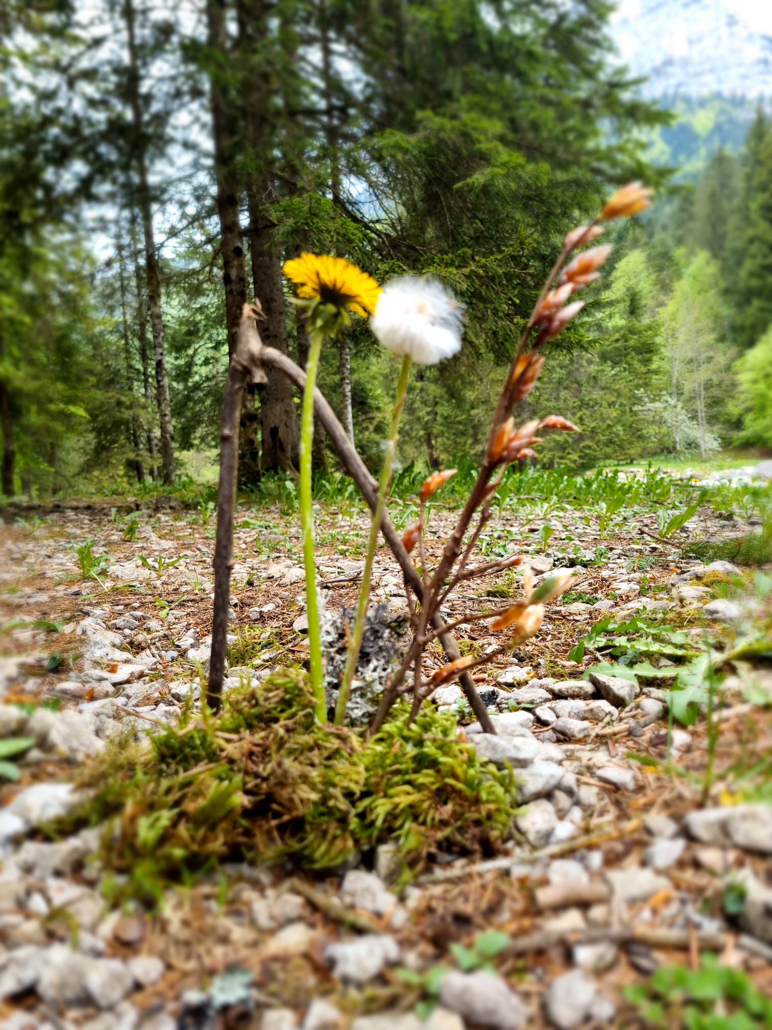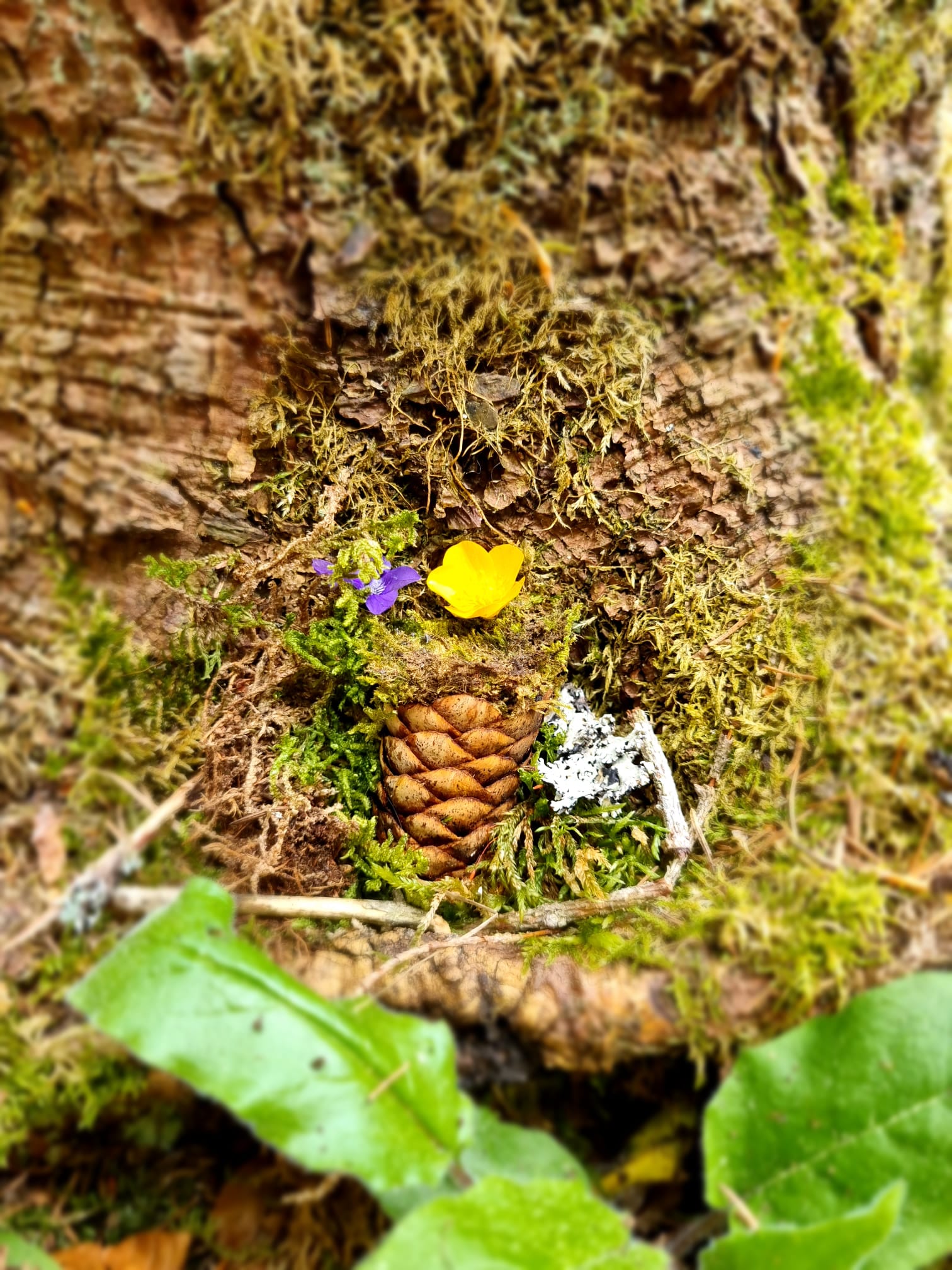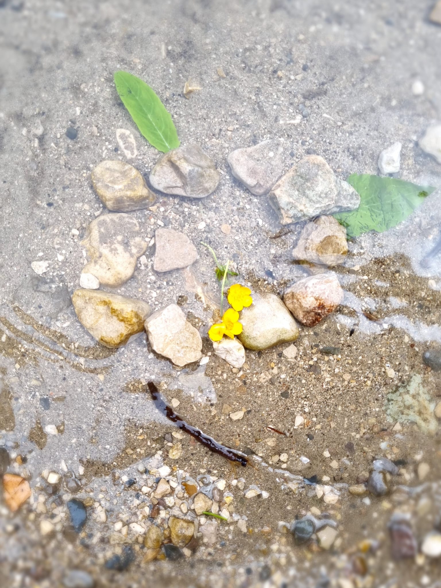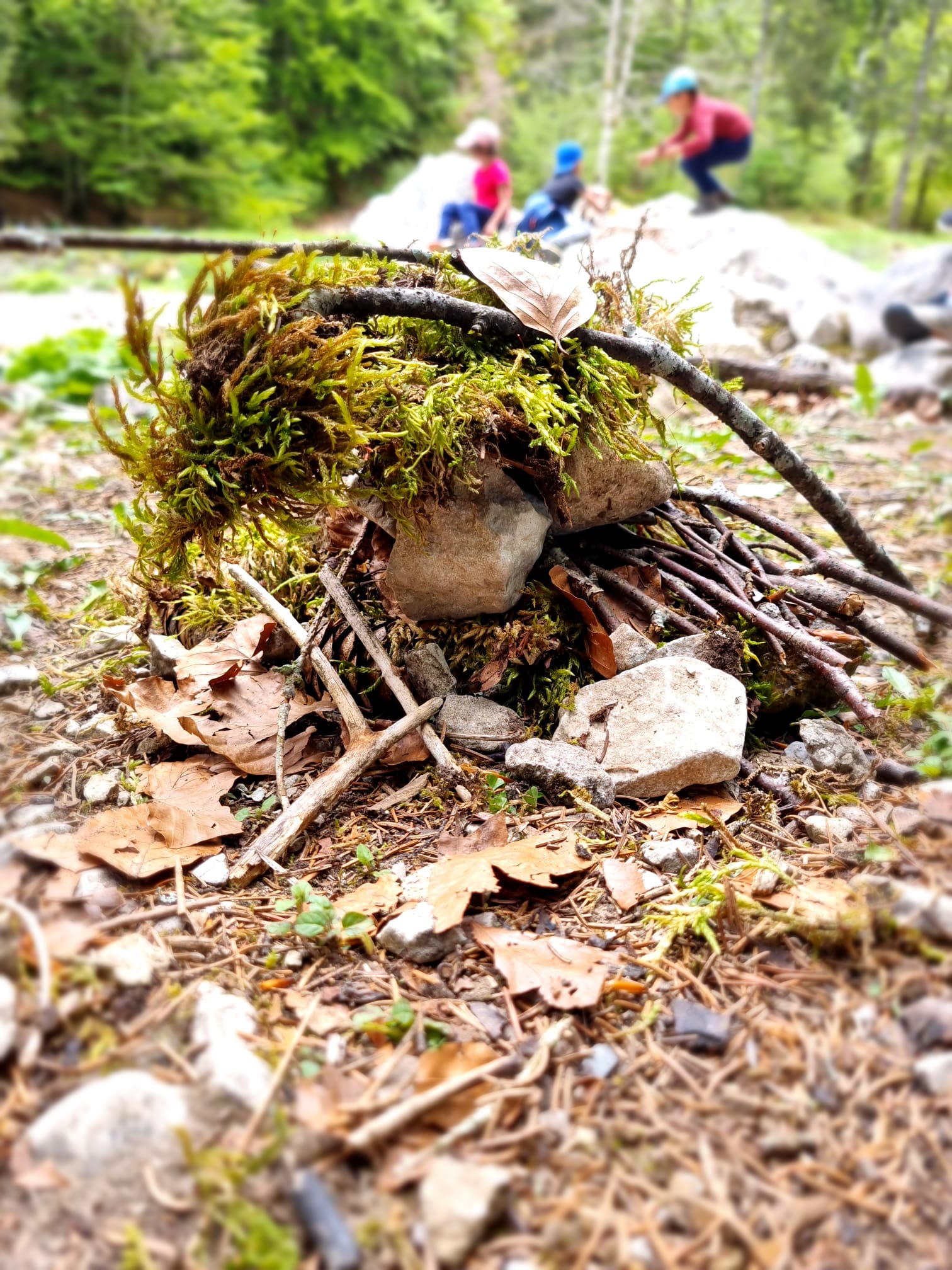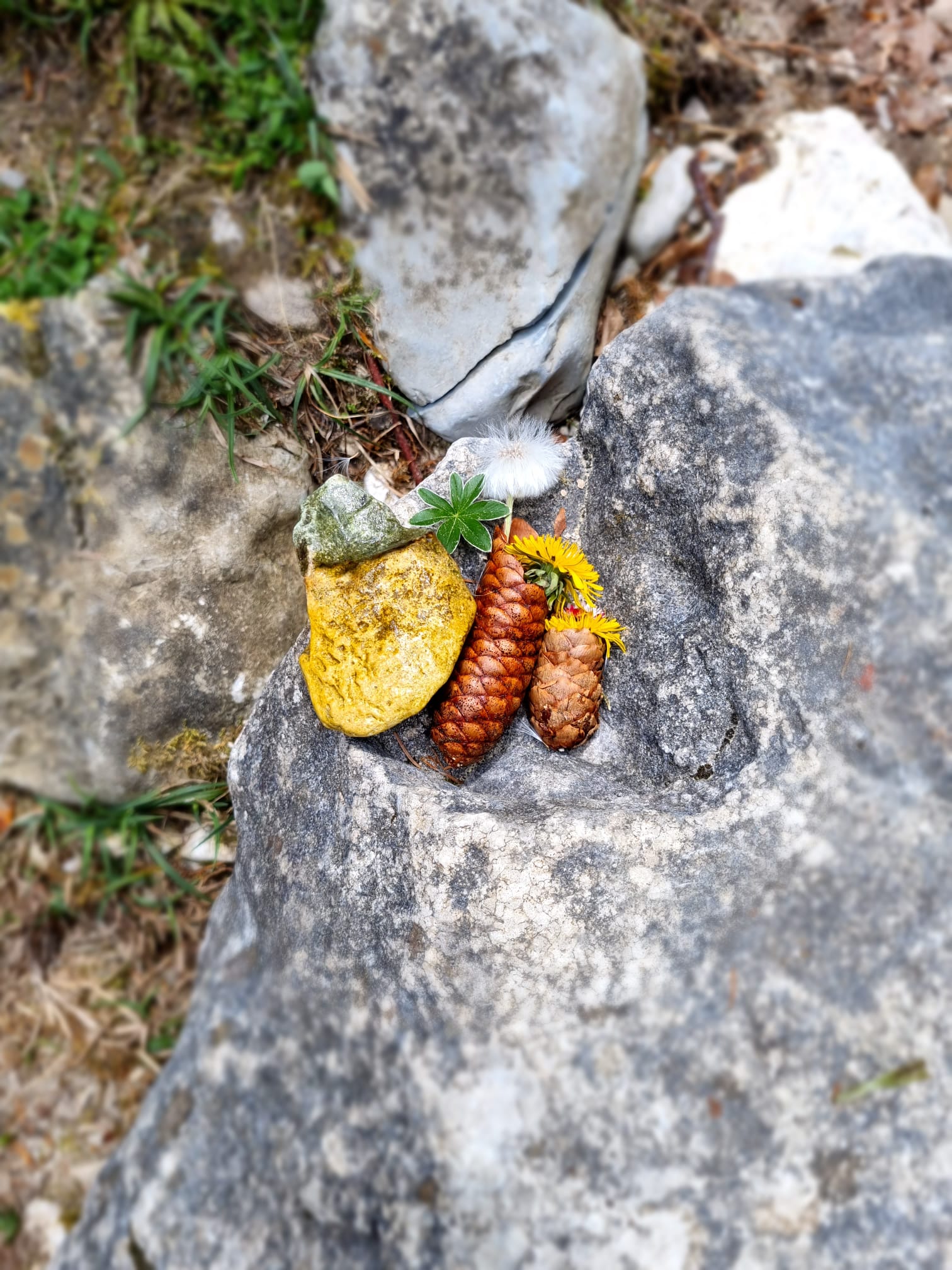 L'après-midi nous avons fait du land art dans la nature. On a utilisé du sable, des branches, des pommes d'épicéa, des pierres, des fleurs et des feuilles.